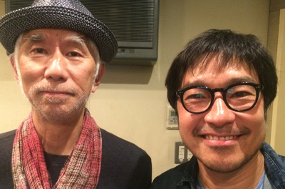 写真は、収録時のトータス松本さんと番組MC:田家秀樹さん。