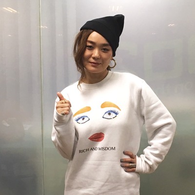 ※色はサンド(ベージュ)でブルーのロゴ、サイズは、女性のSです。